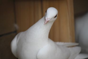 Our doves spend every day flying around the loft, building strength and fitness. They love soaring through the skies, scratching around in the grass, and splashing in their pool for a refreshing swim.
